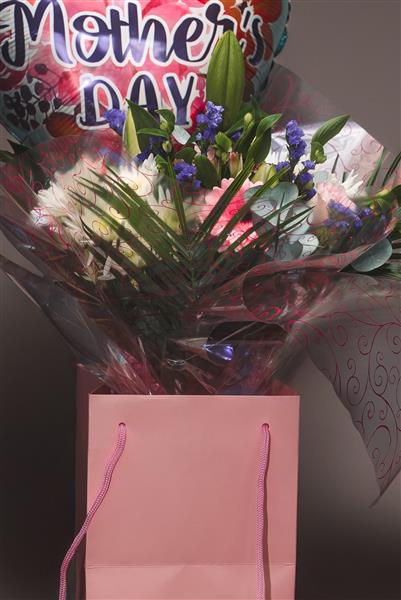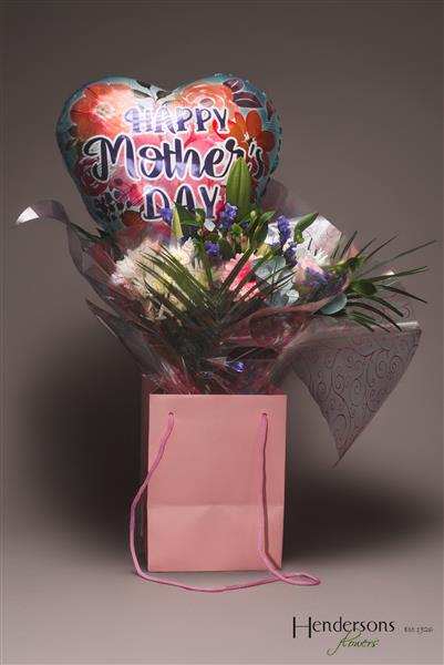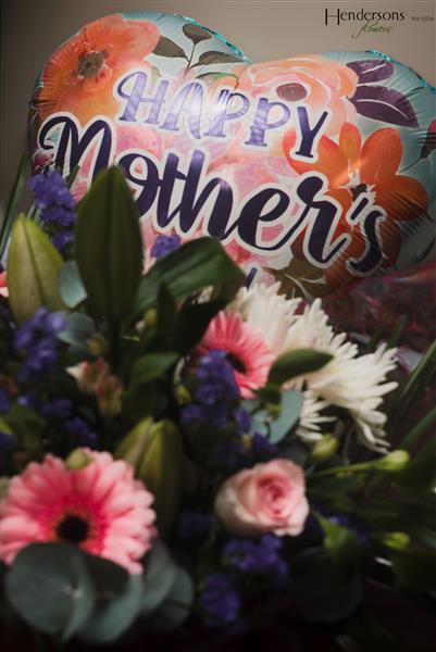 A stunning mixed bouquet alongside a Mother's Day balloon, a perfect gift for your loved ones this Mother's Day.